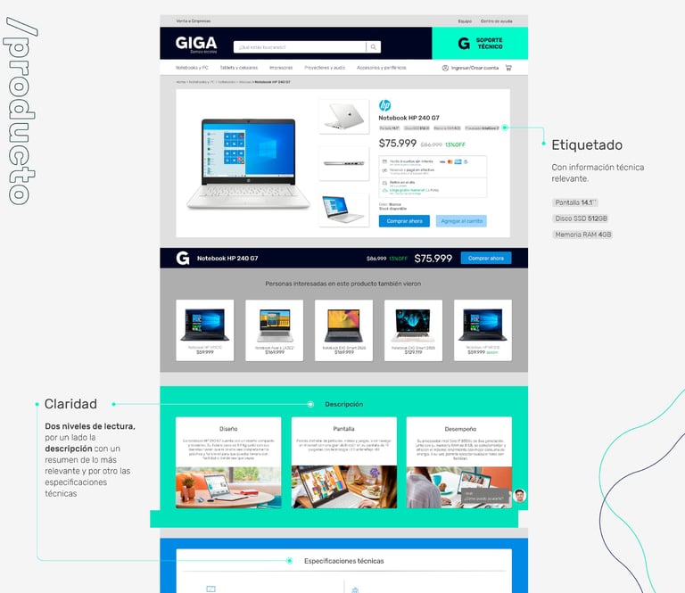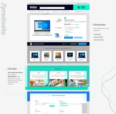 Two-tiered readability – a summarized highlight description alongside detailed technical specifications.